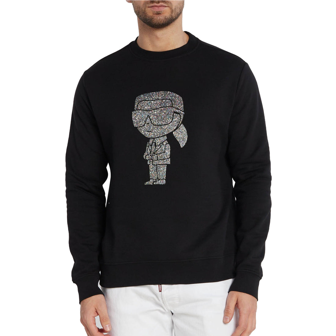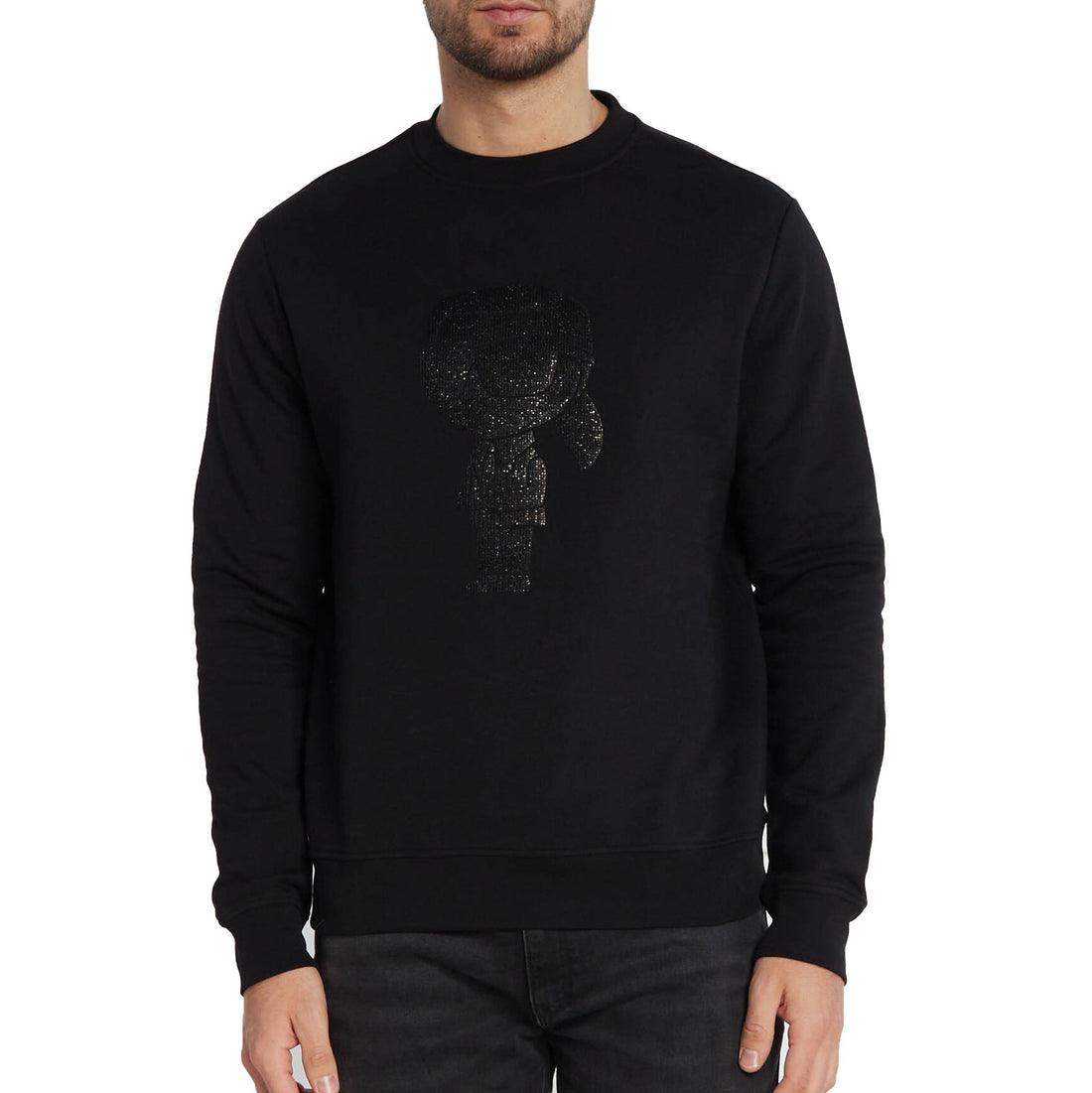 black organic cotton black crystals-detailed Karl doll round neck long sleeves ribbed cuffs ribbed hem...