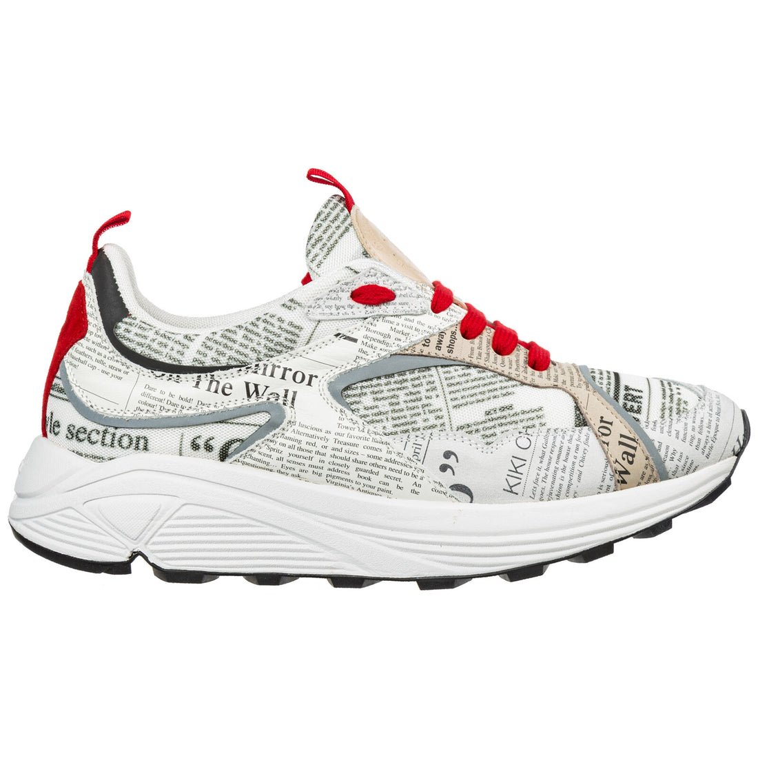 Giày thể thao nam John Galliano bằng da có ren đỏ và họa tiết Gazette.