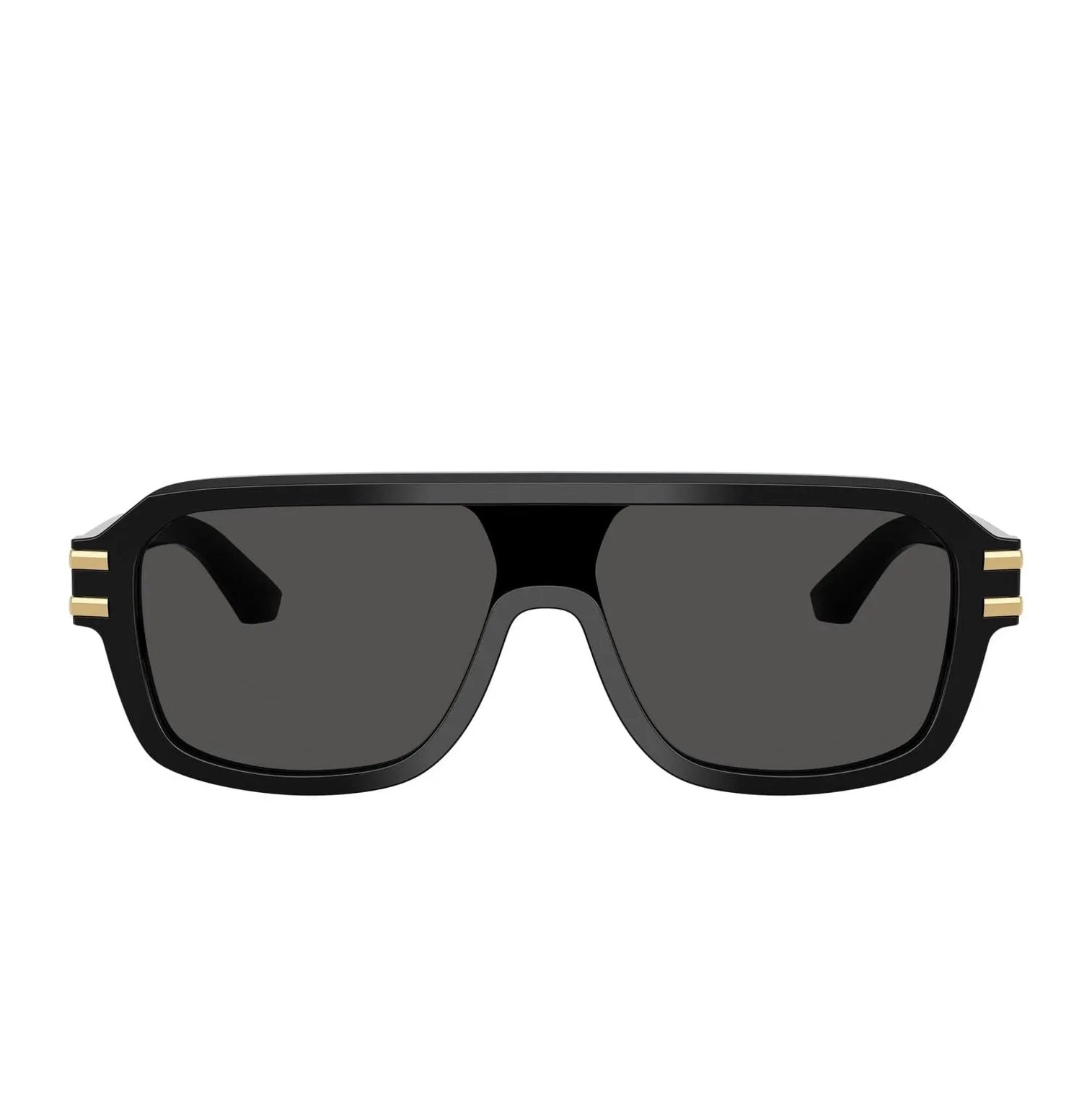 Dolce & Gabbana DG4507 太阳镜,经典黑灰配色,引人注目。这款大胆的飞行员风格镜框搭配金色装饰,彰显独特的设计师风格,兼具优雅现代感和日常百搭功能。