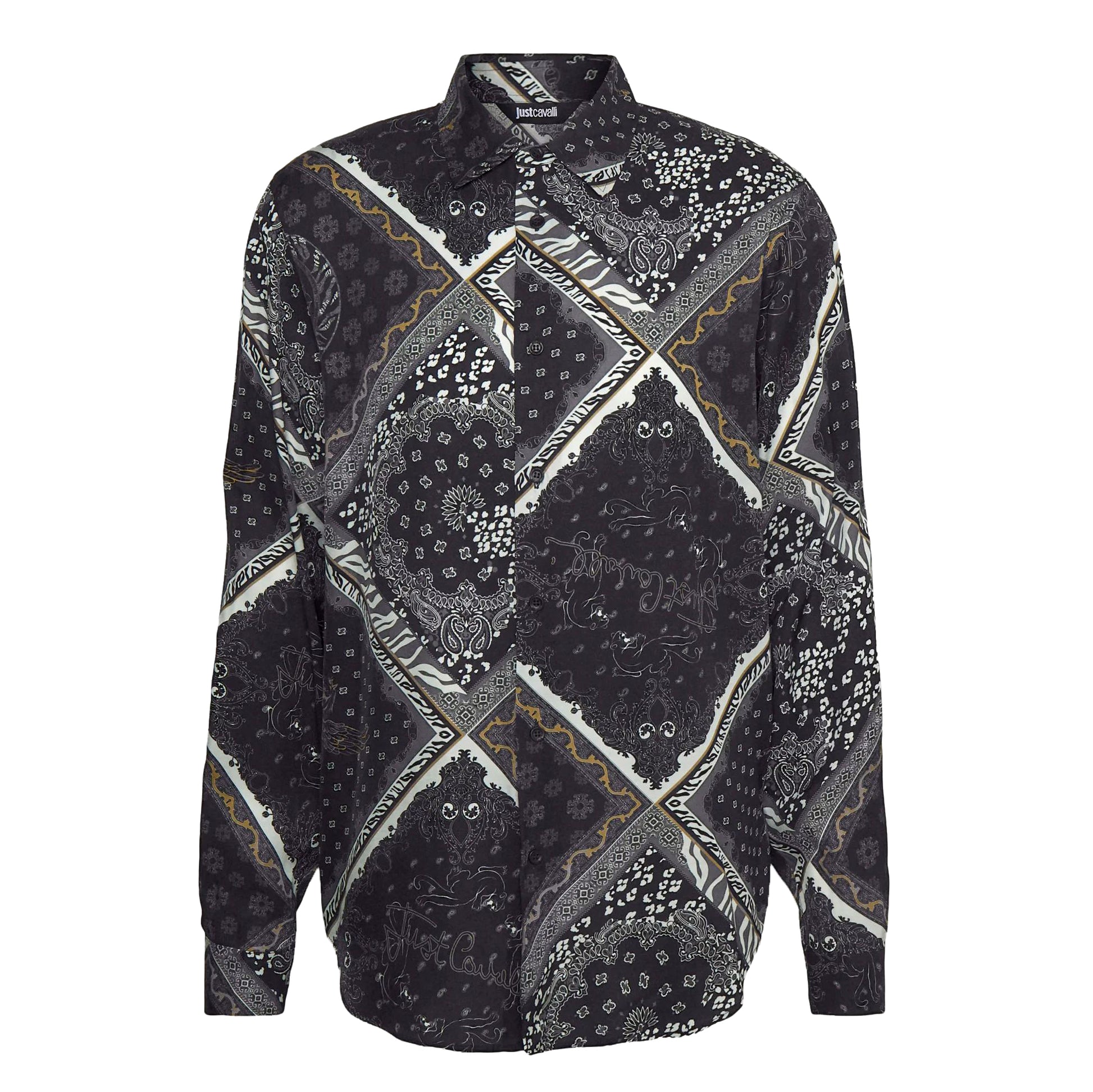 SKU: JUST-CAVALLI-GRAPHIC-PRINT-LONG-SLEEVE-SHIRT-BLACK-GREY-GOLD