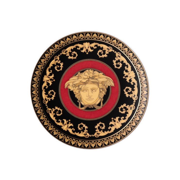 美杜莎红色装饰盘 10 厘米,中心为金色美杜莎,采用优质瓷器制成。