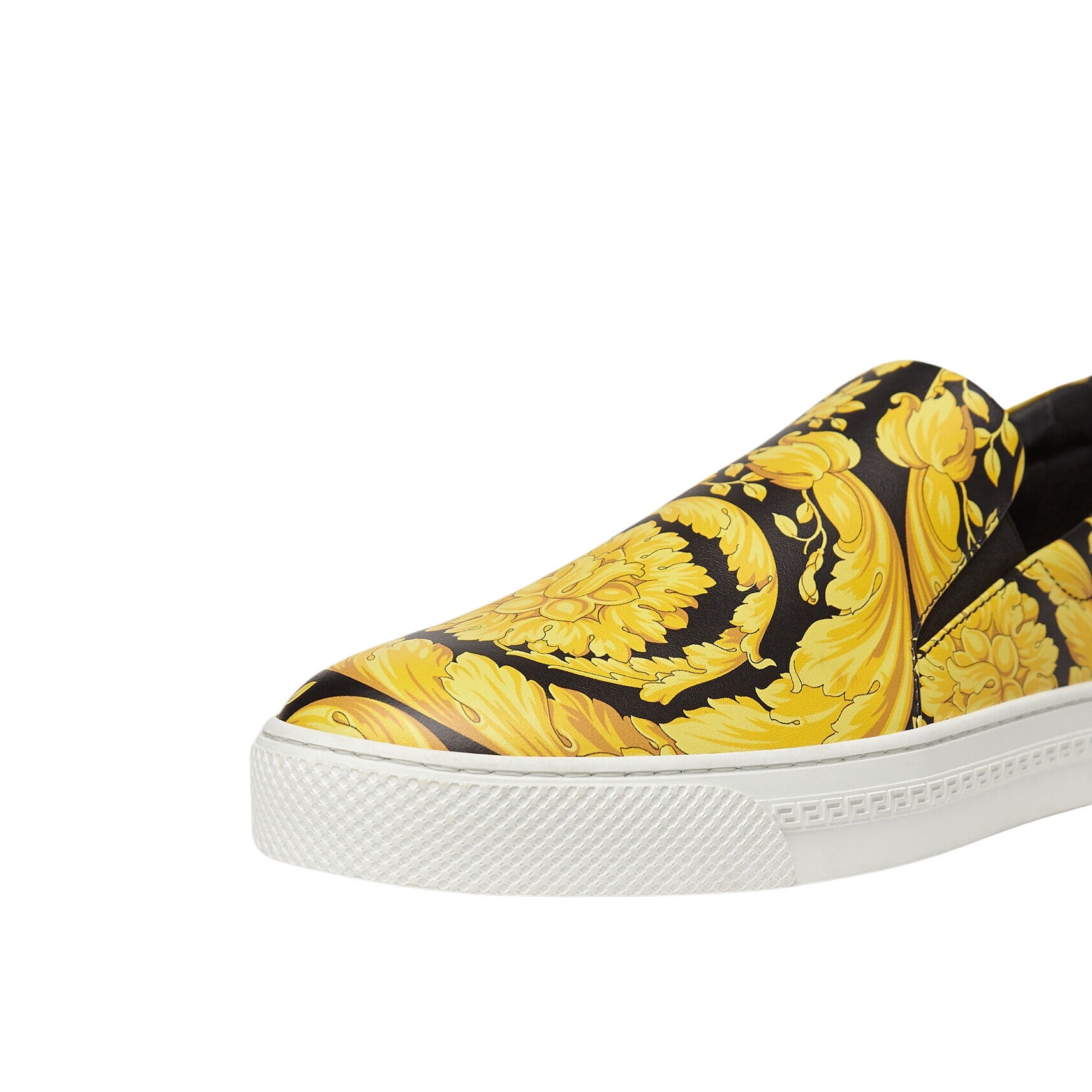 这些休闲一脚蹬运动鞋采用标志性巴洛克印花的柔软皮革制成,可为任何服装增添可识别的范思哲印记。
