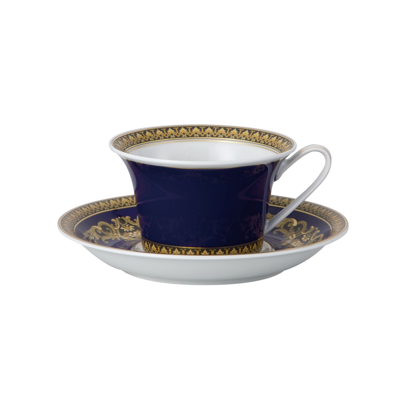 美杜莎蓝茶杯和茶碟采用优质瓷器制成,带有金色巴洛克装饰。